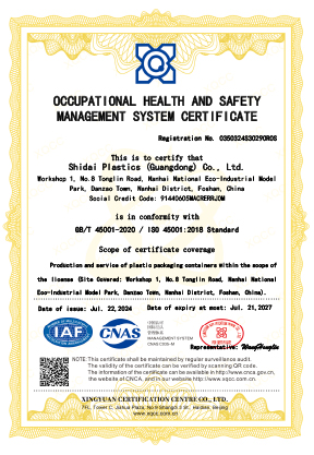 公司按照ISO9001:2015、ISO14001:2015、ISO45001:2018管理體系標(biāo)準(zhǔn),食品及危險(xiǎn)品全國工業(yè)產(chǎn)品生產(chǎn)許可證,出口危包UN代碼許可證等要求建立了獨(dú)特的管理體系。