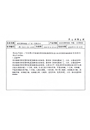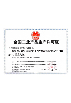 時(shí)代食品用塑料包裝、容器、工具等制品生產(chǎn)許可證